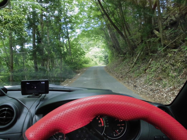 迷子中に通った山の中の妙に綺麗に舗装された道路、、、山間部の村を連絡する道のようなんですが、対向車もゼロで快晴の山の中を一人ドライブという妙な時間、、、。