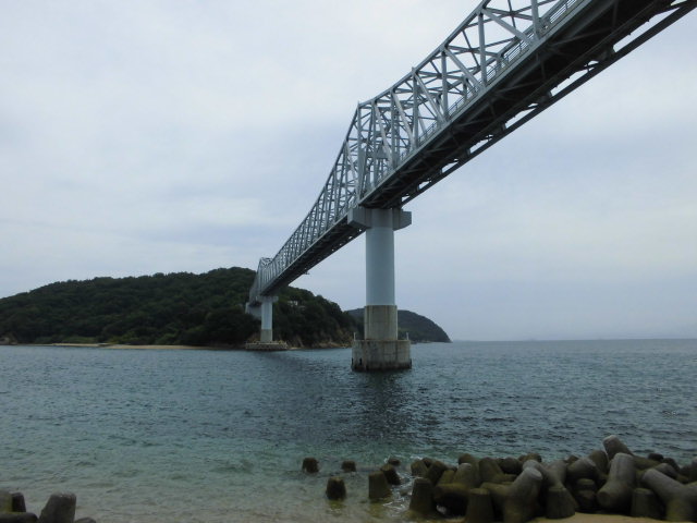 ヘロヘロになりつつも何とかたどり着いた本州側の瀬戸大橋を下のアングルから。