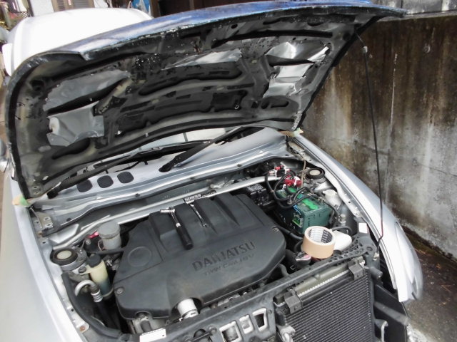 初代でも自作していたボンネットダンパーを改良(と言ってもボルト類をエポキシ樹脂で補強取付しただけですが)したモノを取付。