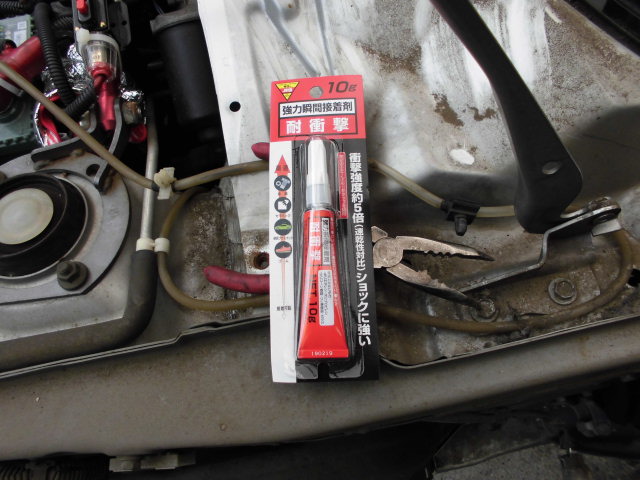 まずはビンボーチューンでお馴染みの瞬間接着剤流し。