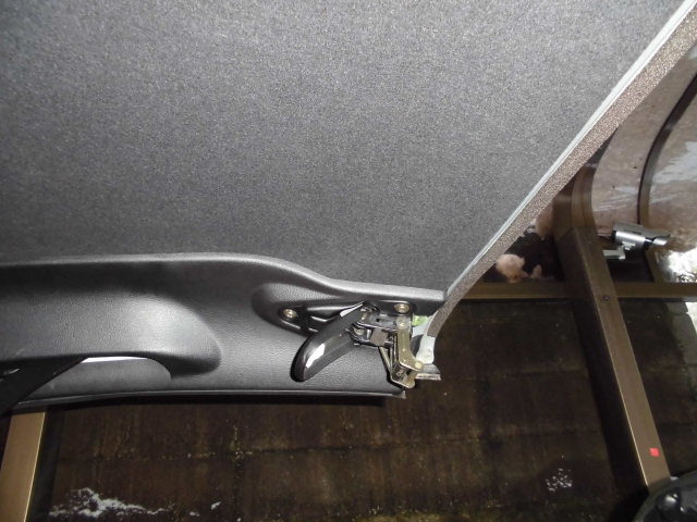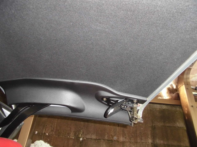 まずはルーフ側のラッチを外してルーフの内張を取ります。