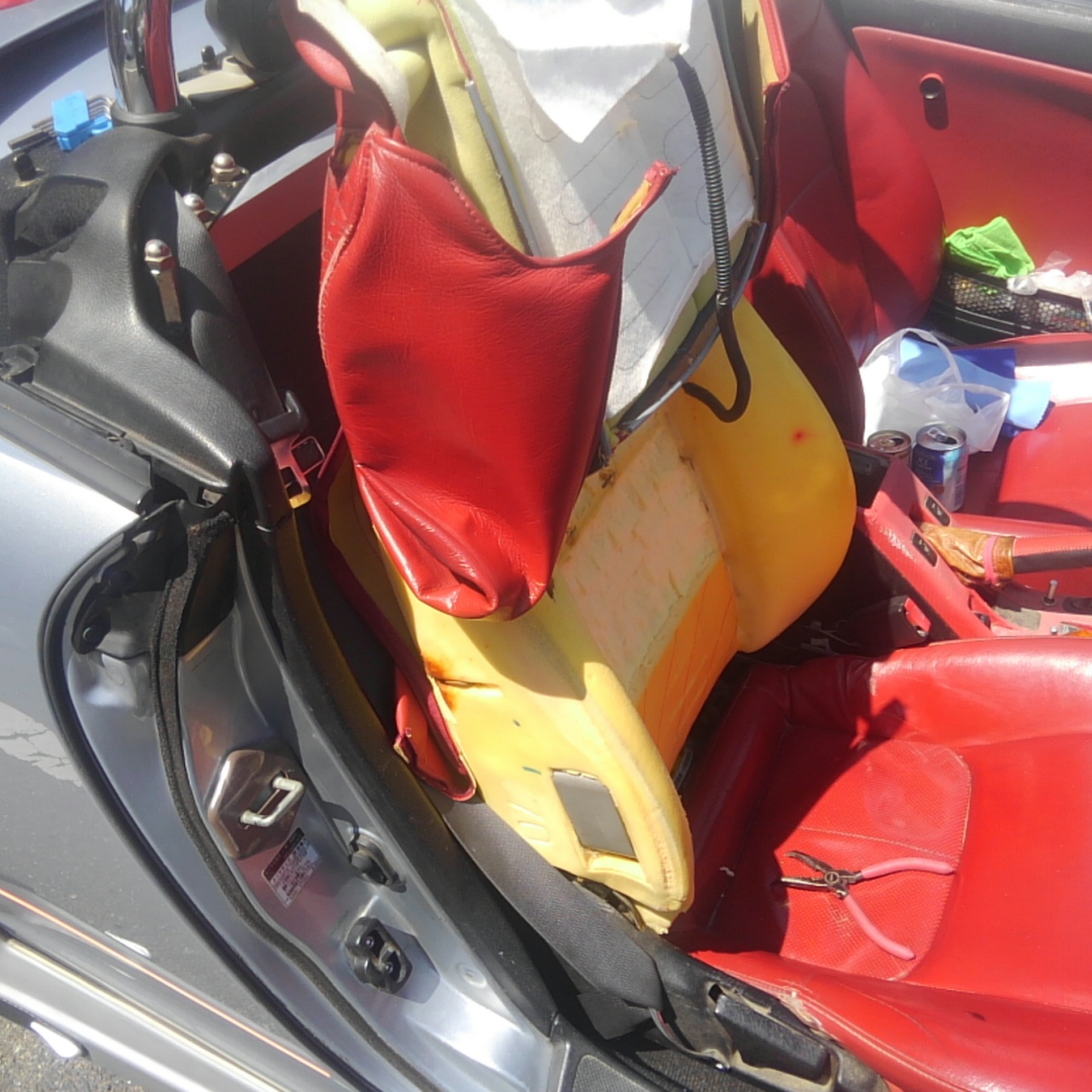 「これならシート降ろさなくてもいけるんじゃね?」って事で車載状態で脱がしました。
