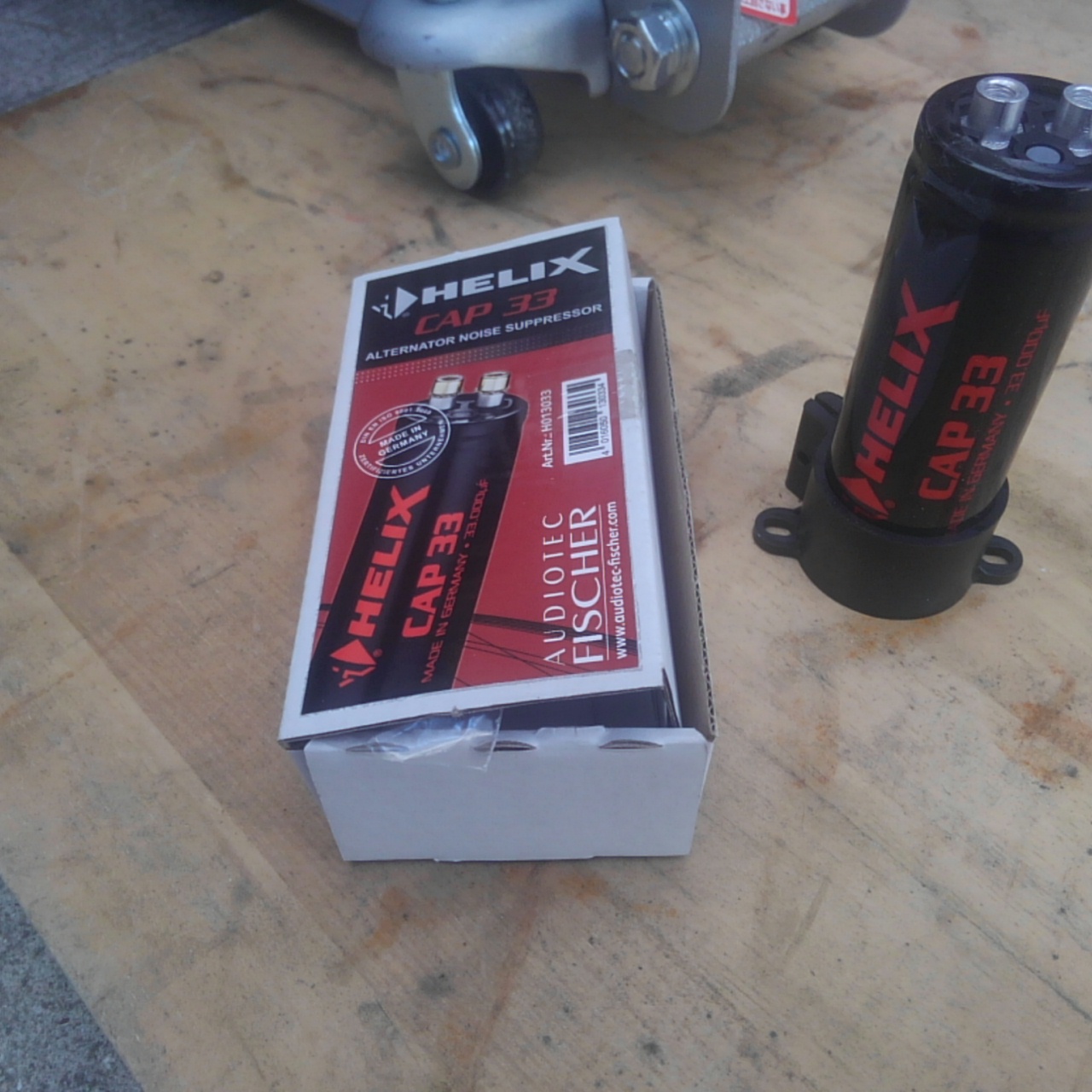 コンデンサーとは蓄電器の事で文字通り電気を溜めたり放出する電子部品で、このコンデンサーをバッテリー端子に並列に繋ぐ事で車の走行状態によって不足する電気を補う、という所謂オカルトチューンと呼ばれる方法です。