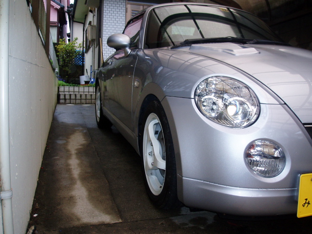 コペンでは、しかも純正足ではちょっと無理っぽいサイズしか無い。車庫調とか入れればあるいは、ですがそもそもベタベタに落とす気もない。(既に国産最強の低車高)リアは1cmくらい落として、若干ケツ上がりくらいが好み。