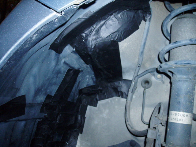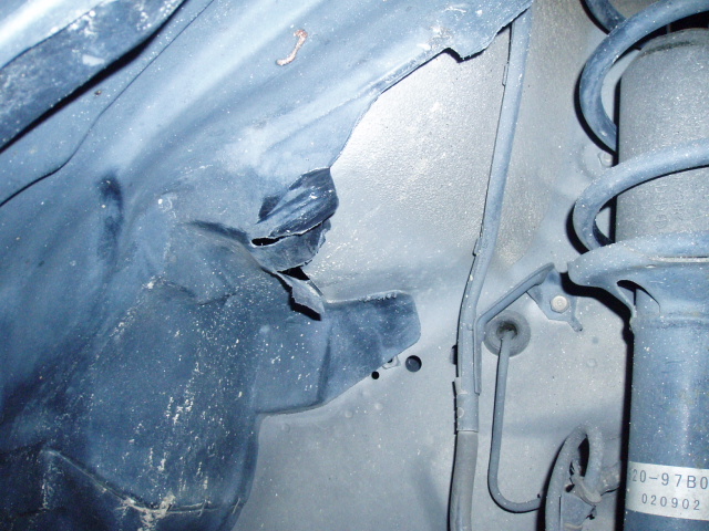 これは助手席側。見事定番の位置が干渉しめくれ上がっていますので、応急処置していきます。
