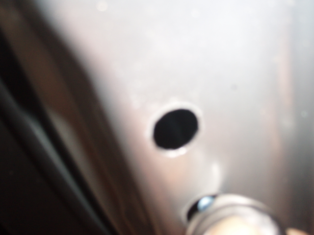 ドア側の穴をインサートナットが入るまで拡大してから