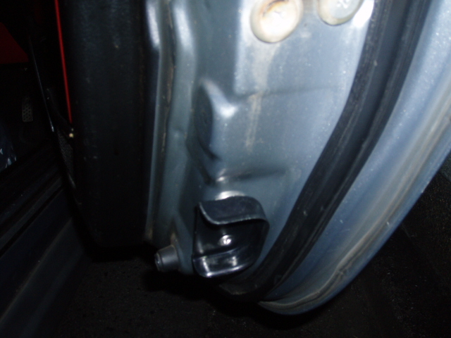 ボディ側のゴムとドアの金具で、ドアとボディを連結させている様子。