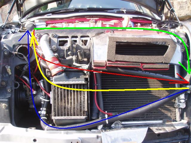 OUT側は以前IN側で使ったラジエター前を通るルートを利用します。
