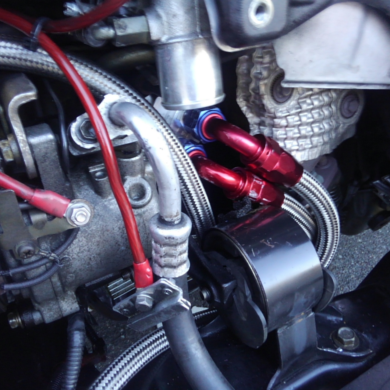 ホースフィッティングはAN10、デカイし取り回しが最悪。