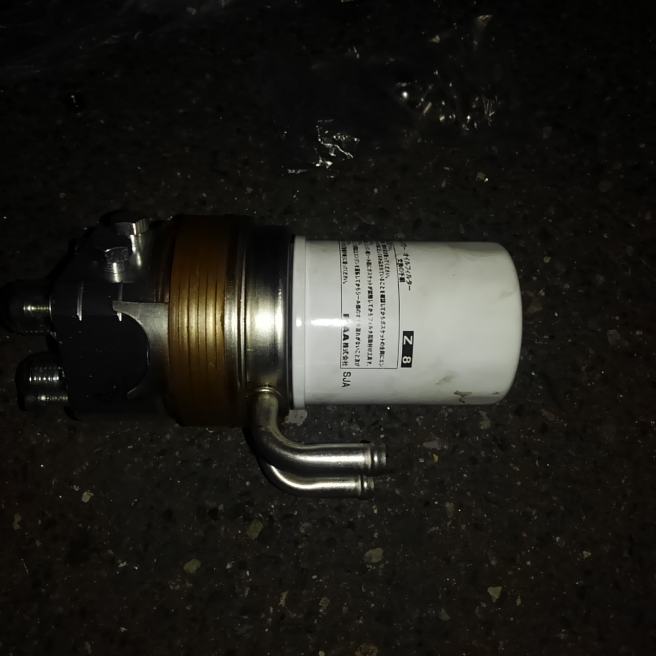 取り合えず、オイル取り出し口を仮設置。なおヤフ〇ク製の恐らくアメリカ製?の汎用キットです。