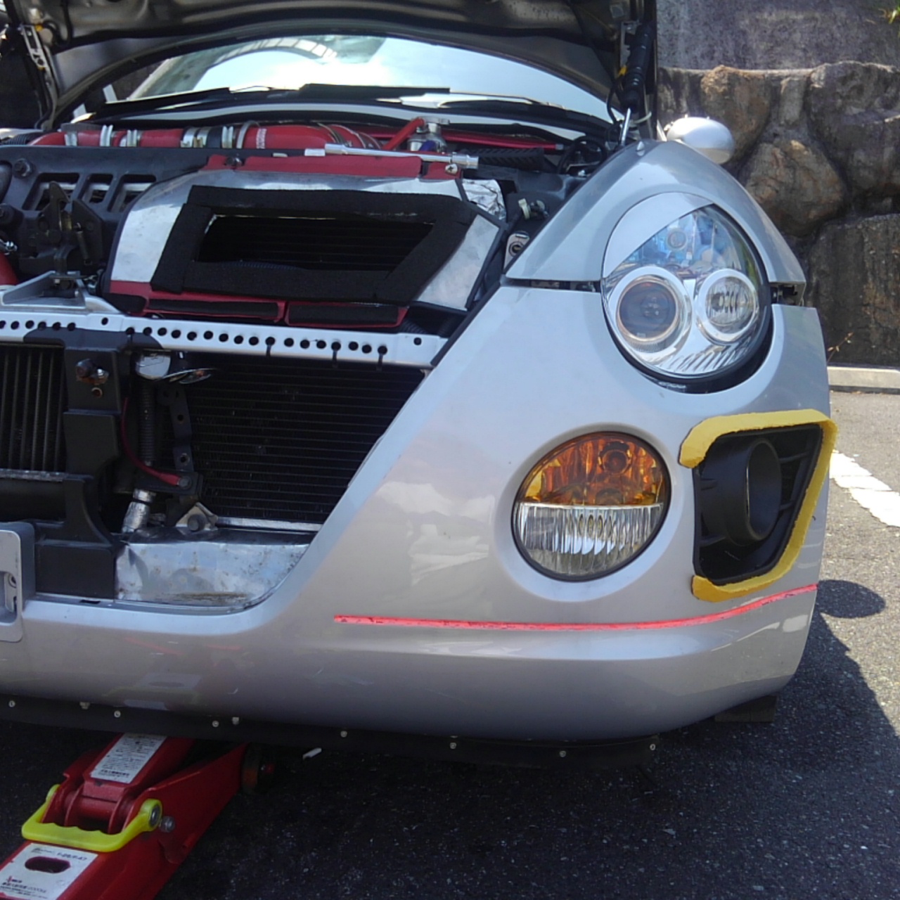まず、フロントバンパー左右にオイルクーラー&ATFクーラー用ダクトを新設します。
