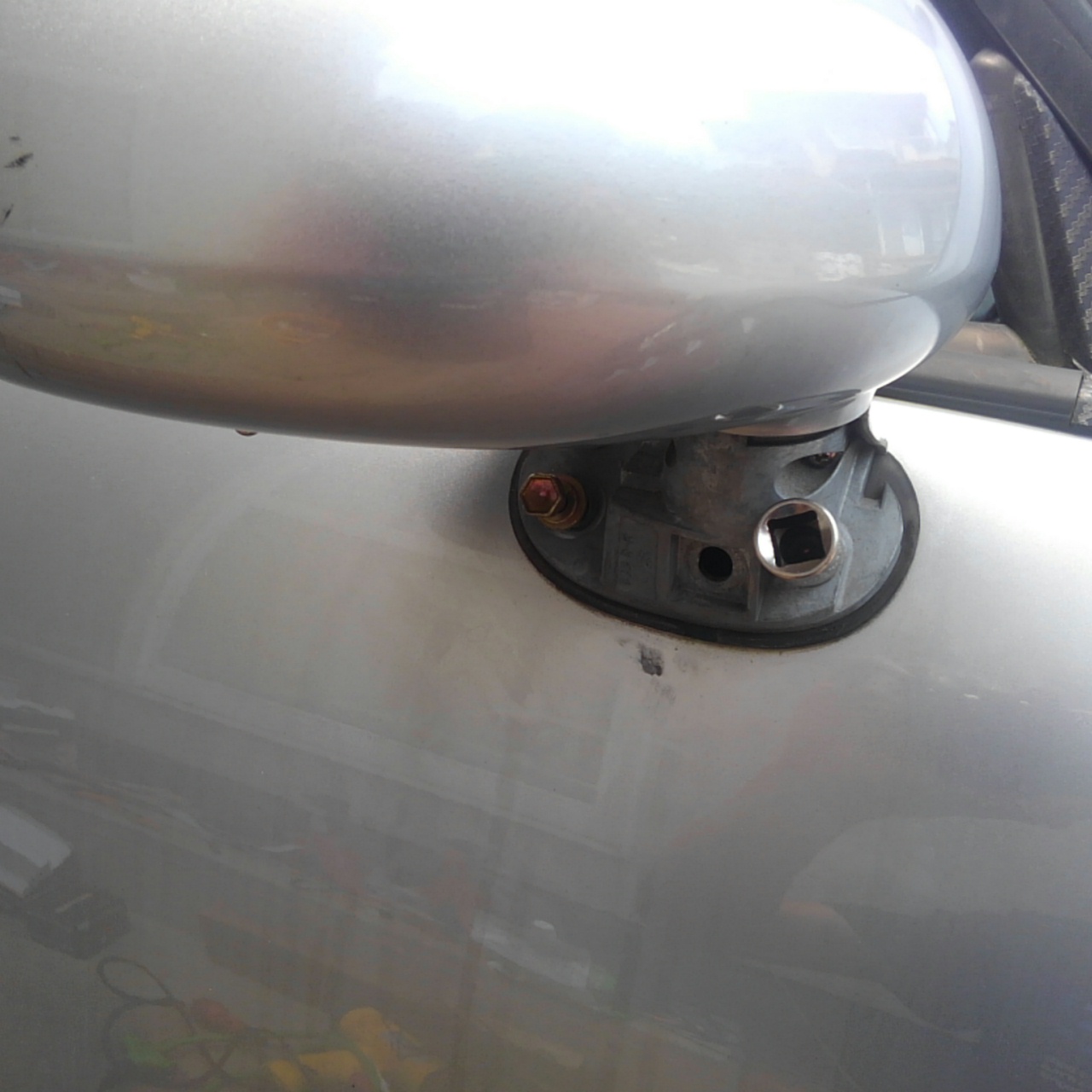 完全にはボルトを外さず、ドアミラーが落下しない程度に