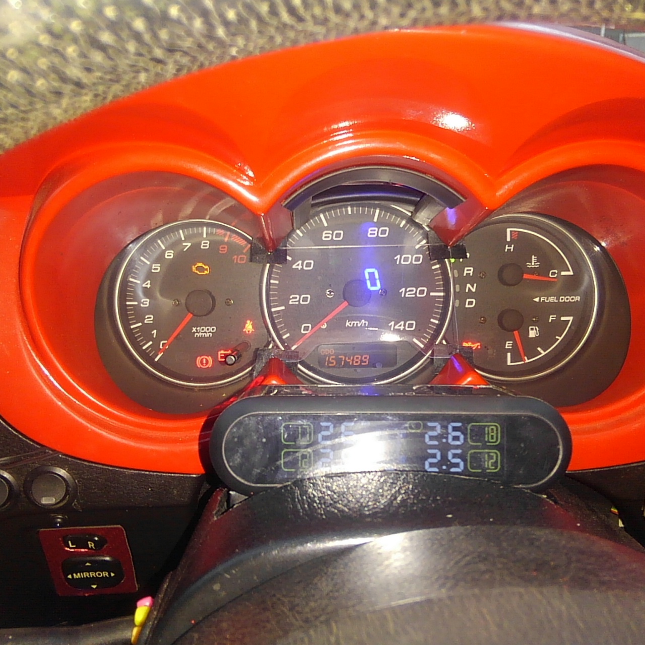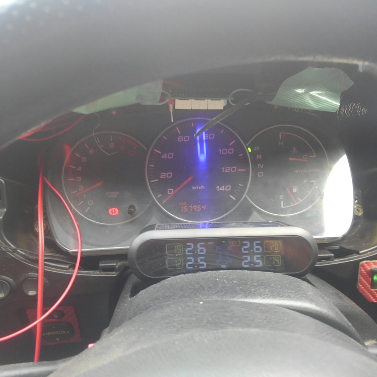 デジタルメーターキットの青LEDは非常に視認性が良いですね。今日は生憎の雨模様でしたので真夏の快晴ではどうかわかりませんが元々メーター周りが薄暗いコペン(あまりに見えないので常時点灯にした)ですから。
