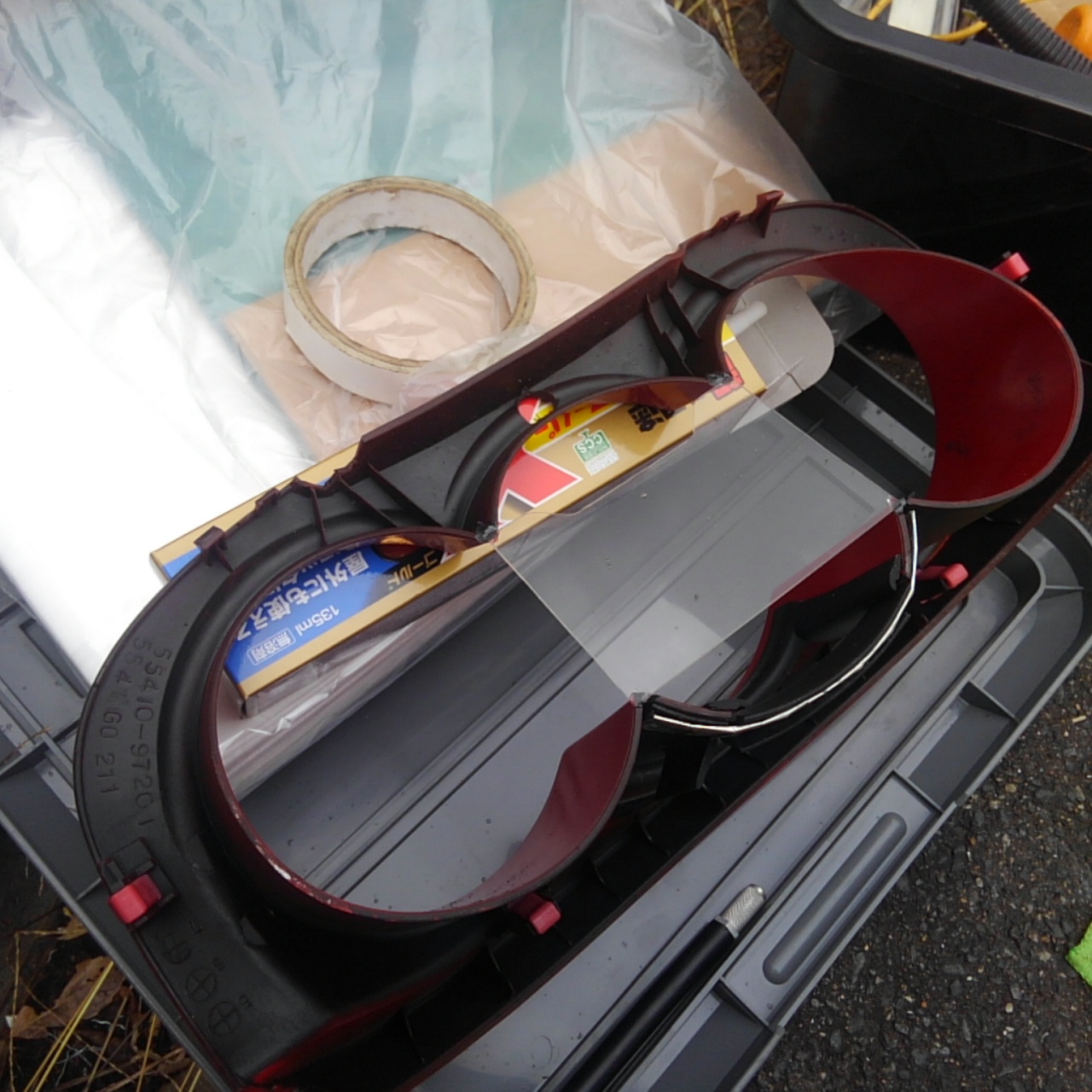 フロントガラスも湾曲しているんで何とかなるかな?と思っていたんですが無理でした。おまけにメーターカバーが傷だらけで汚いのもあるのかしら?