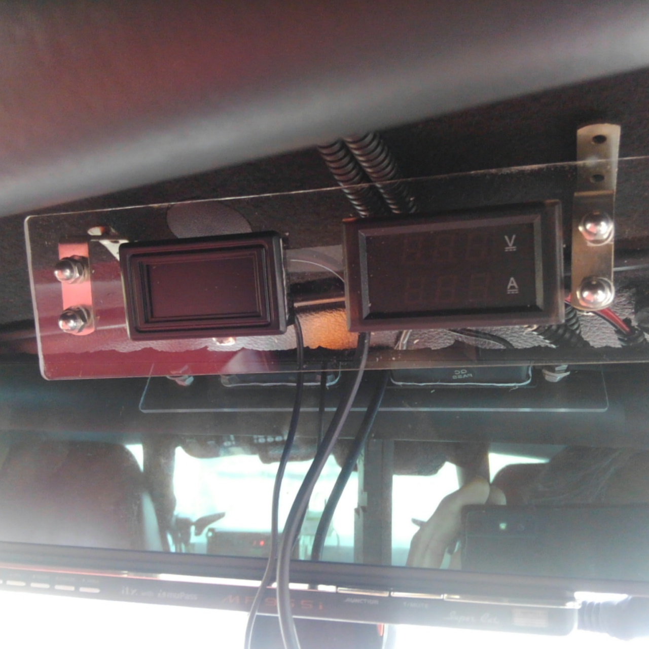 壊れた先代の電波時計を取り外した際に再度アクリル板でステーを作りましたので電流計共々取り付けします。