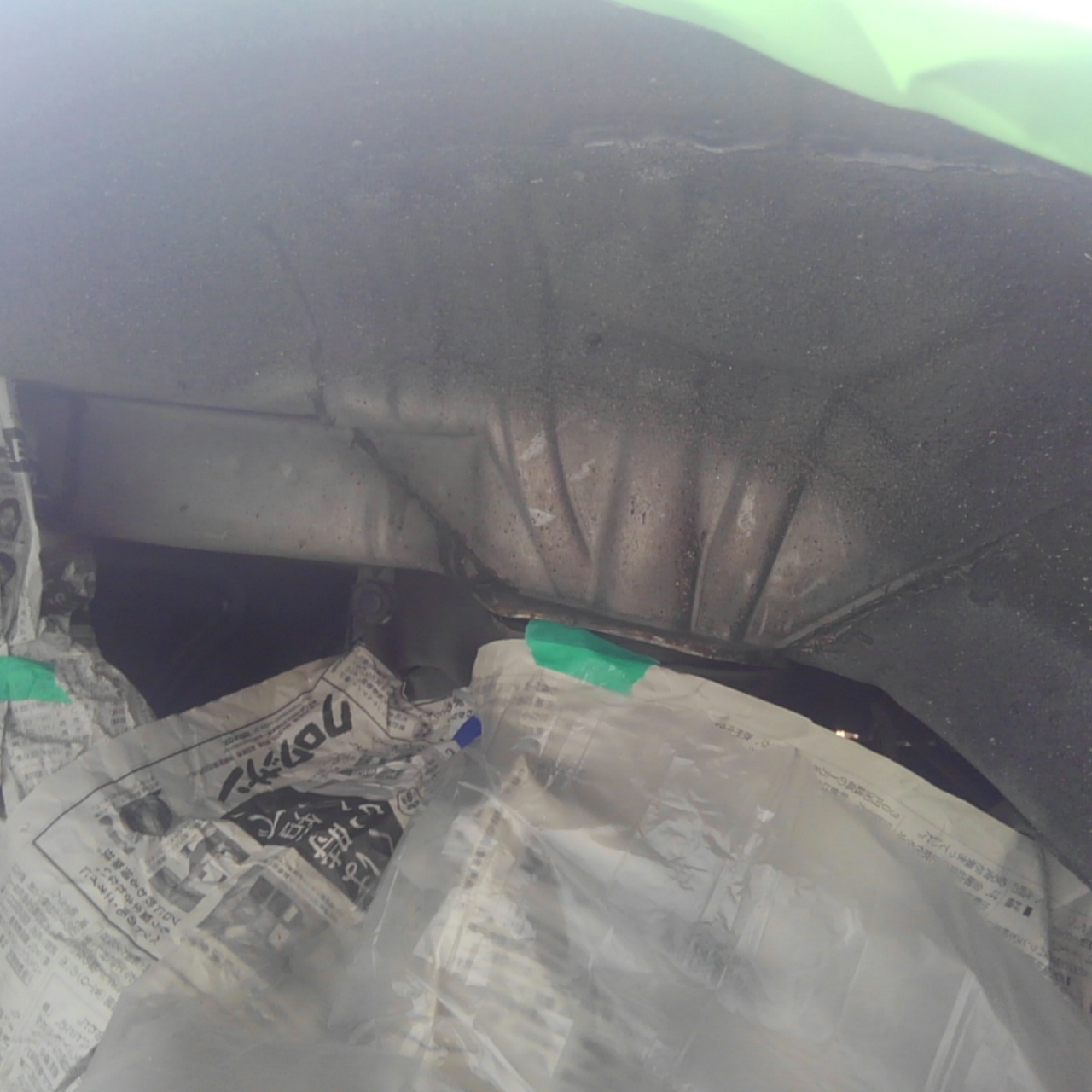 まぁそれはいいんですが、以前より構想?をしていたタイヤハウス内のゴムスプレー塗布を急に思い出してみたので午前中やってみました。