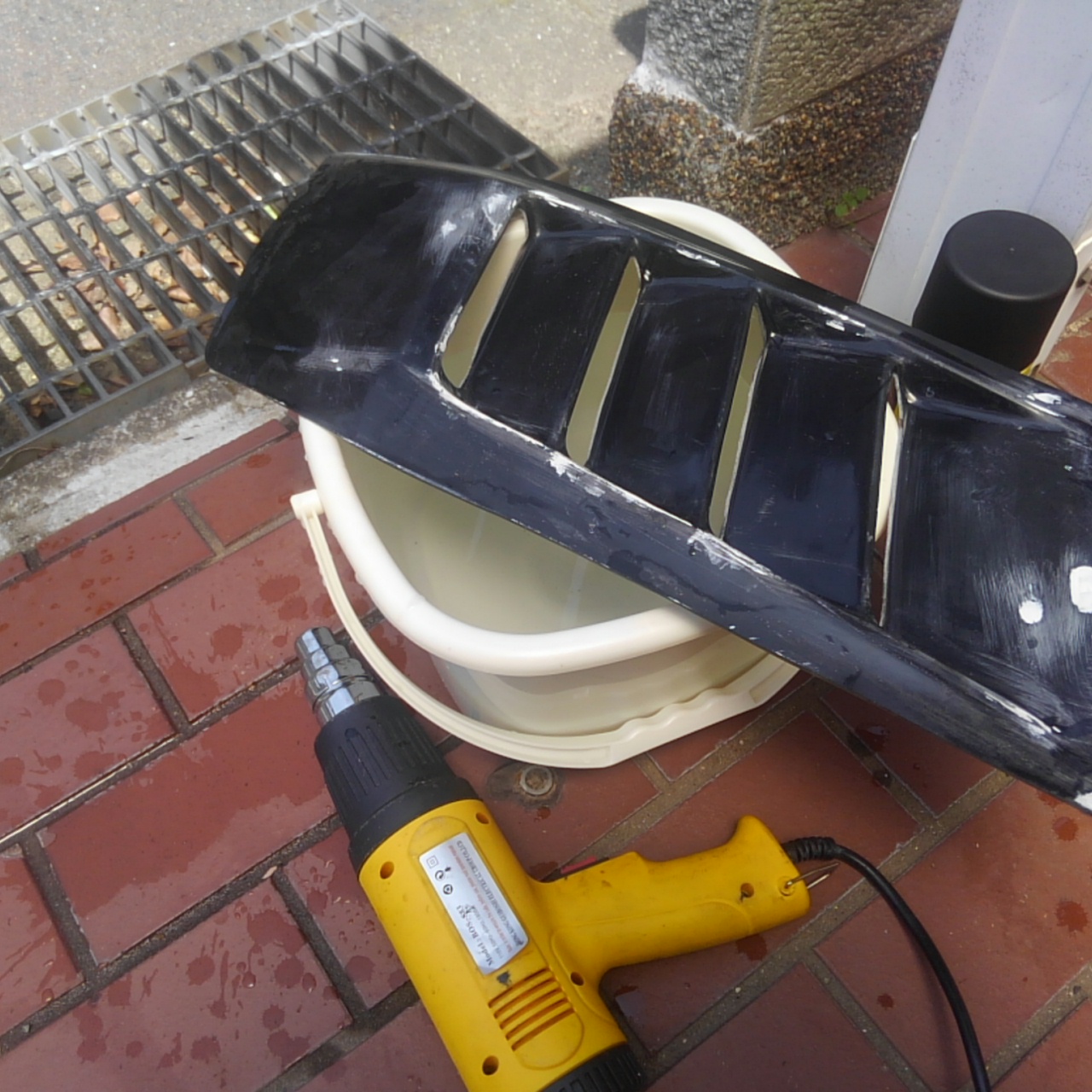 フェンダー内部の構造と折り合いをつけるべく、さらにヒートガンで熱して冷まして。