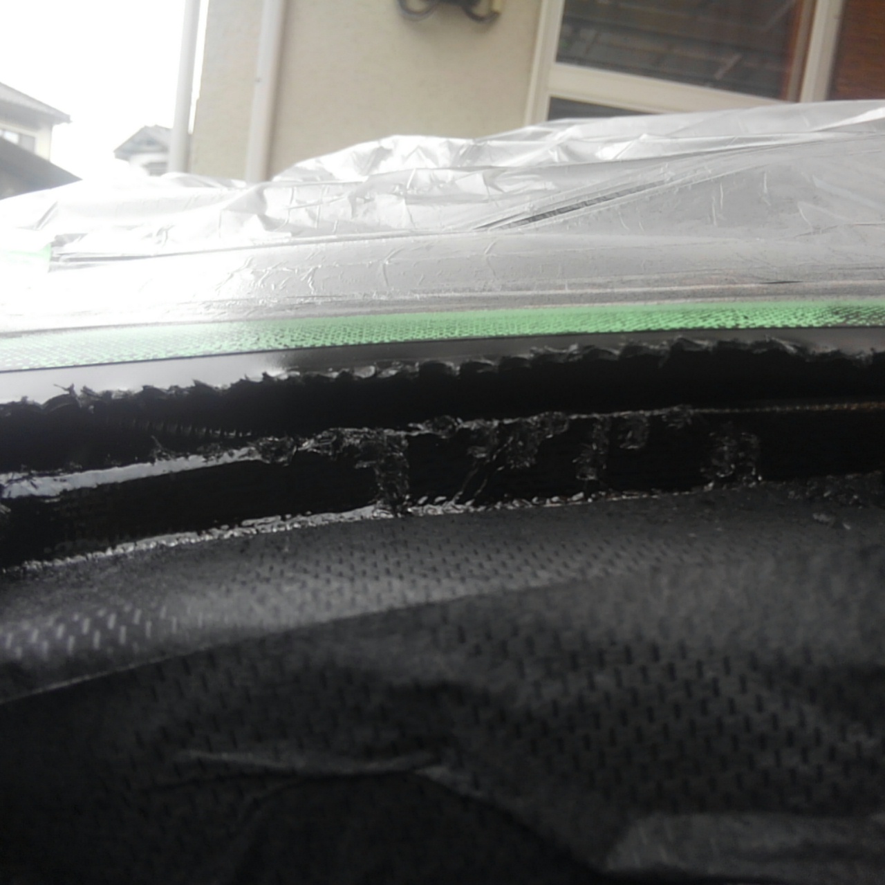 インナーパネルにベタベタ貼り付けしているのは保護用の防水テープで、その下にアルミクロステープ(確かガラスクロス)を補強材代わりに全面貼りしています。