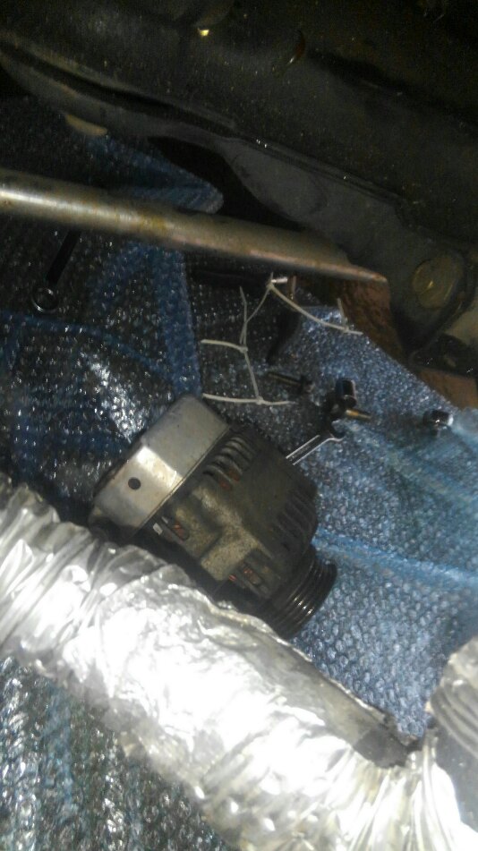 釣られてオルタネーターもゴツっと鈍い音とともに地面に落下。