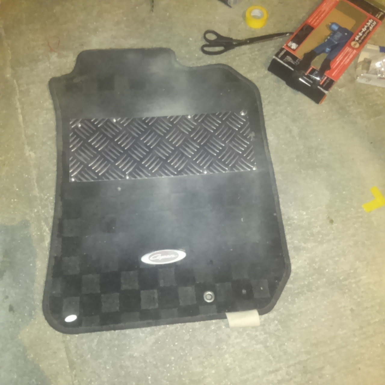 Q COPEN! > DIY内装編 > アルミ縞板ヒールプレートを取り付けした話