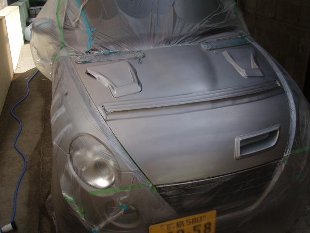 本日はペーパーにて水研ぎ後、マスキングテープにて養生してボディカラーにて塗装します。