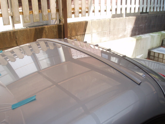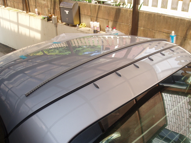 従いまして今回は簡単に外れないように(外せないように)100均シルバー&クリアで軽く塗装して取り付けして、さらに左右に切り込みを入れてルーフの曲面に合うように加工、両面テープも車用のモノを使用(余りモノですが)簡単に外す気が起きない仕様です。