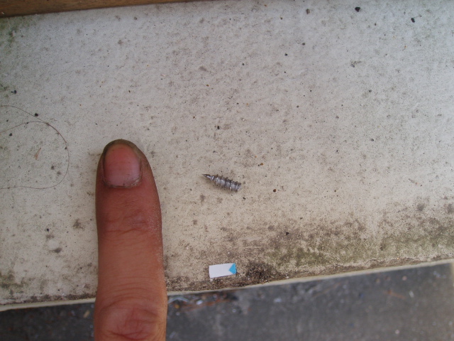 バンパー戻してから、何故か空気圧が抜け気味のタイヤに空気入れにガソリンスタンドまで行こうと思っていた矢先のパンク箇所発見。