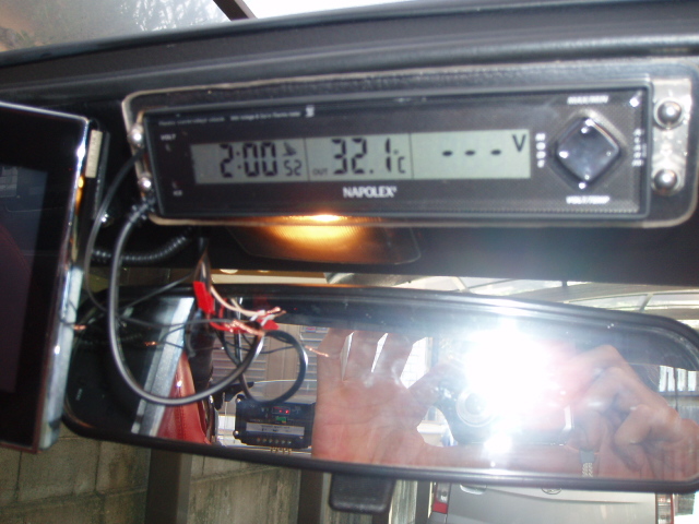この赤白線は電圧計用の配線で、もう1つ外気温センサーの配線があります。