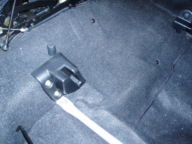 このホルダー、ボルト3本で止まってますので外してトランクのカーペット?をめくると捨てボルトがありますので、左右の捨てボルトをバーにて連結いたします。