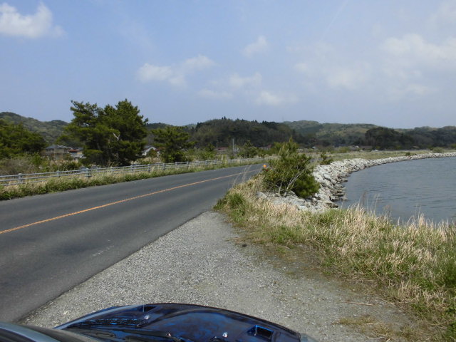 ですが農道と侮るなかれ、中海の海岸?に沿って、、、というか中海の上に農道を整備したのか?走行してみると、ちょうど左右のウィンドウから水面が見渡せる為、まるで水面を走っているよう?な感じです。