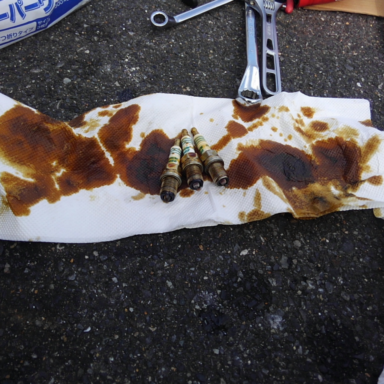 プラグホールに溜まっていたオイルにどっぷり漬かってました。