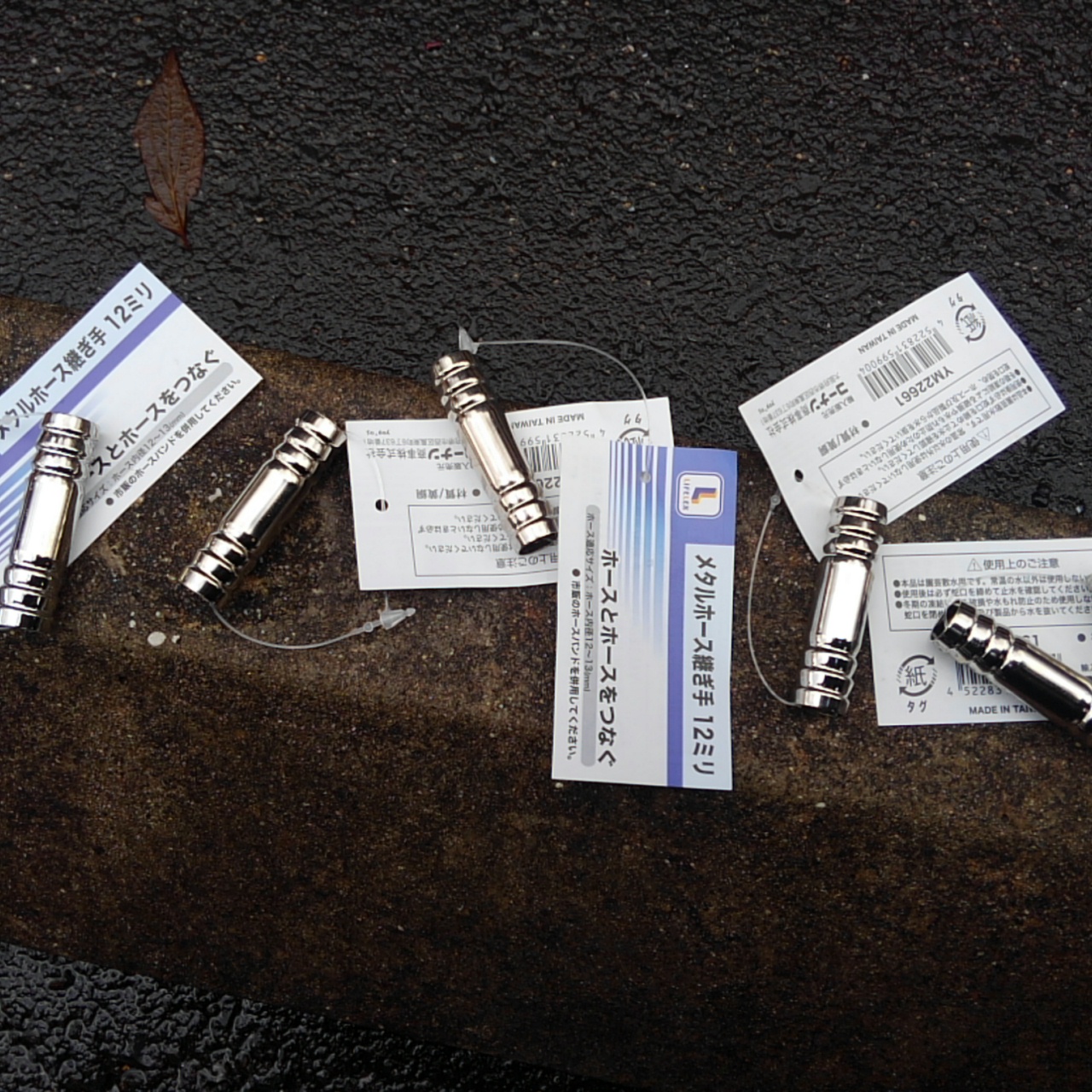 ホームセンターの水道コーナーにあるホースの継ぎ手(12mm)です。