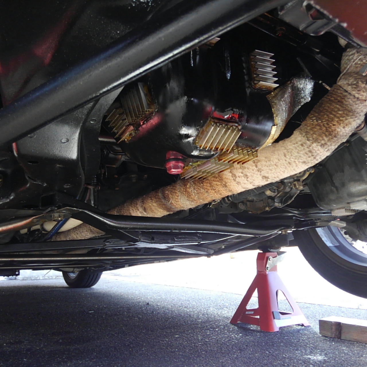 本当はフロントパイプ外してオイルパンを剥ぐって