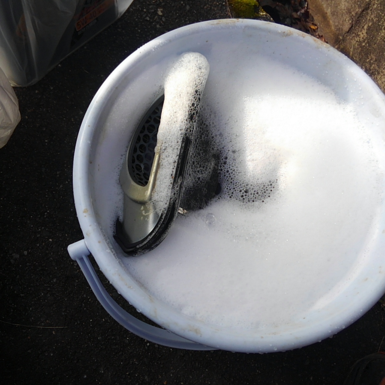 エアクリーナー入れた途端に洗浄液が真っ黒に、、、、。