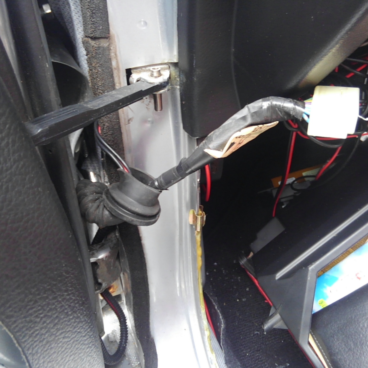 上の画像箇所、運転席アクセルペダル近くにちゃんとウィンドウ配線が来ています。