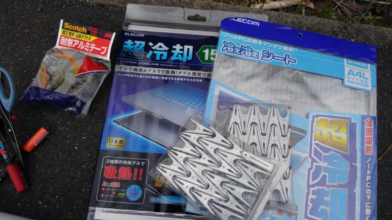 アルミシートと冷却ジェルの効果でノートパソコンの熱暴走を抑える的な商品です。