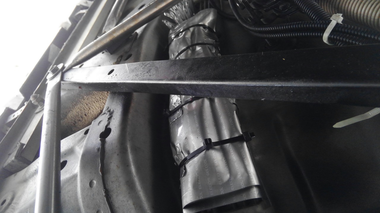 エンジンの熱気から隔離するべく発砲スチロールの断熱材(水道管用)にて