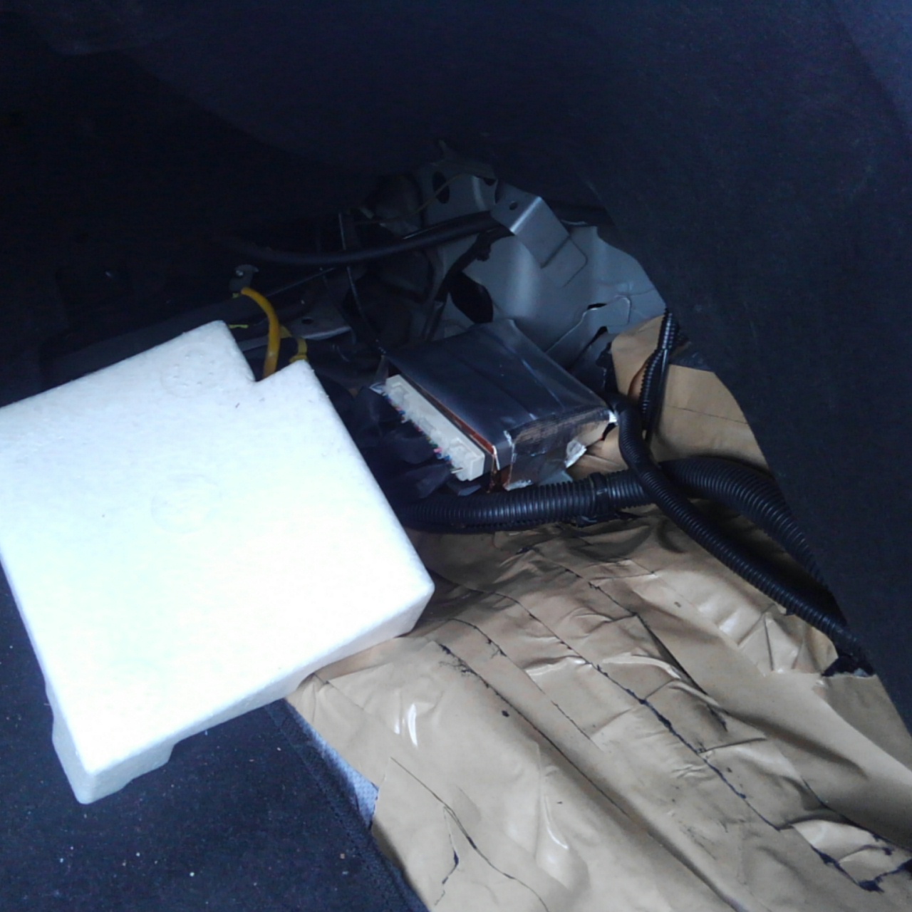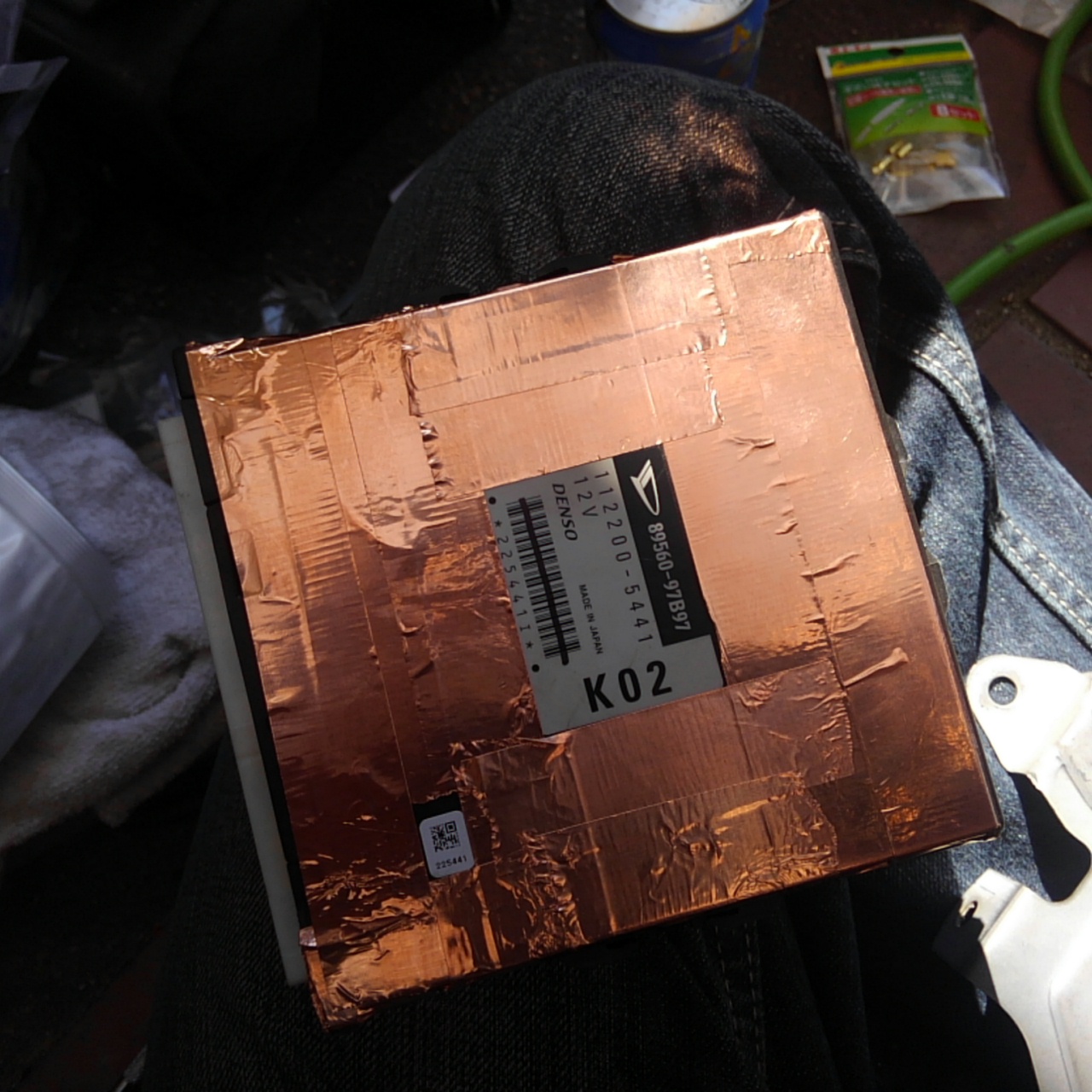 なお、この銅箔テープ貼りの目的は外部の電磁波からECUを保護する目的と