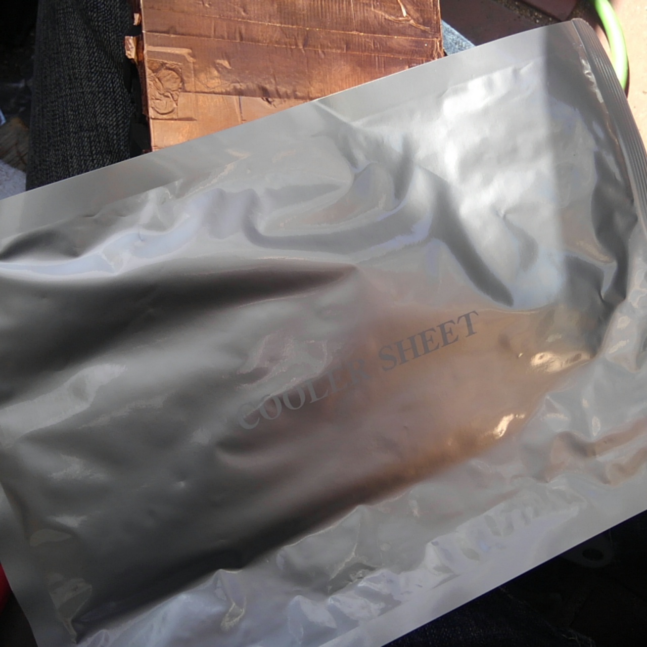 取り出した冷却シートをECUの形に馴染ませるべく、指で中身のジェルを中央に寄せ、折っていく。