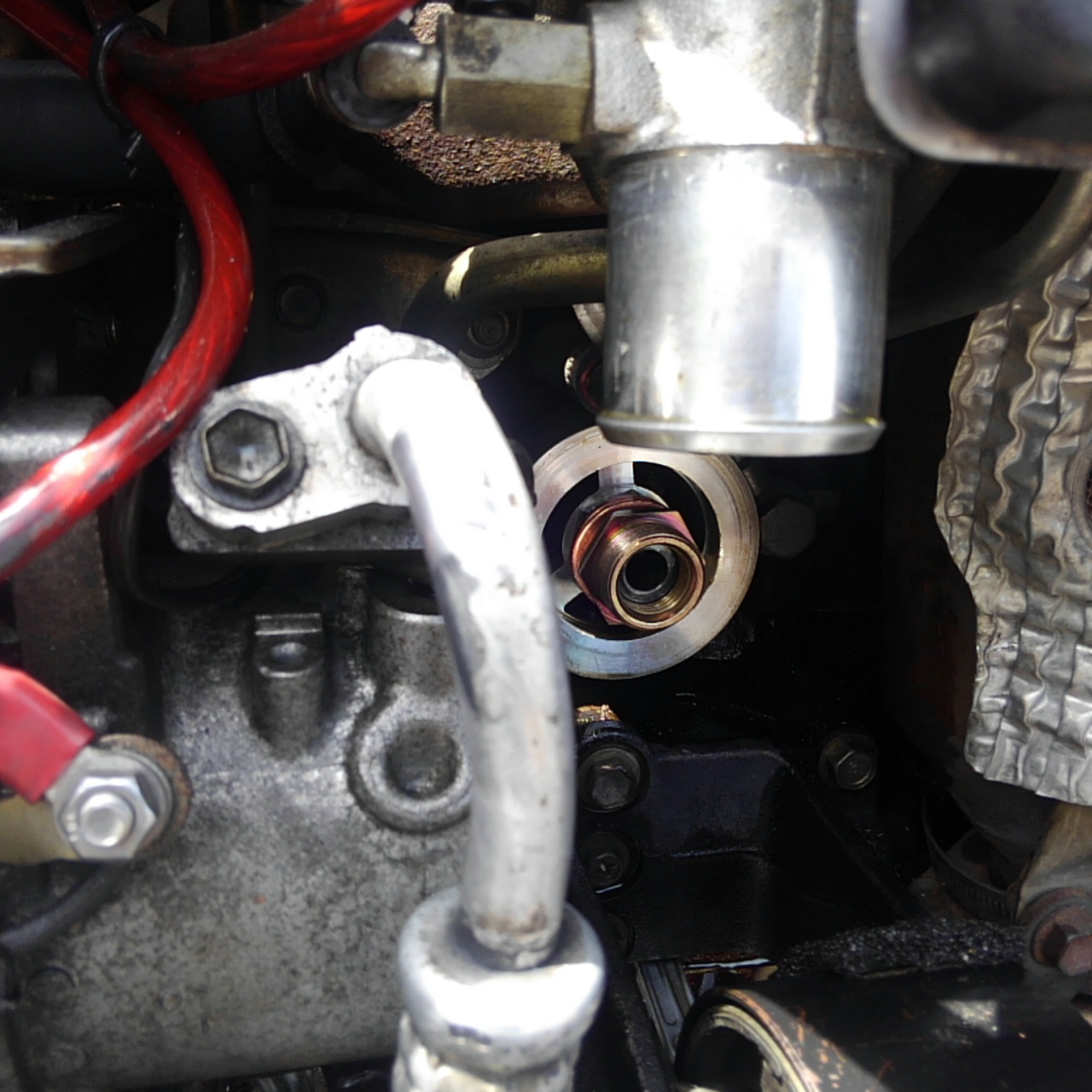 で、コンパクトフィッティングを一回外したんですが、よく考えれば油温を計測するのには良い場所です。