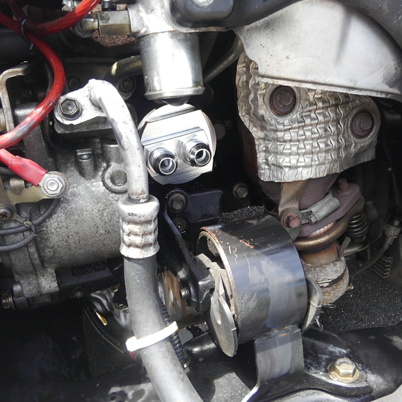 取り合えず、オイル取り出し口を仮設置。なおヤフ〇ク製の恐らくアメリカ製?の汎用キットです。