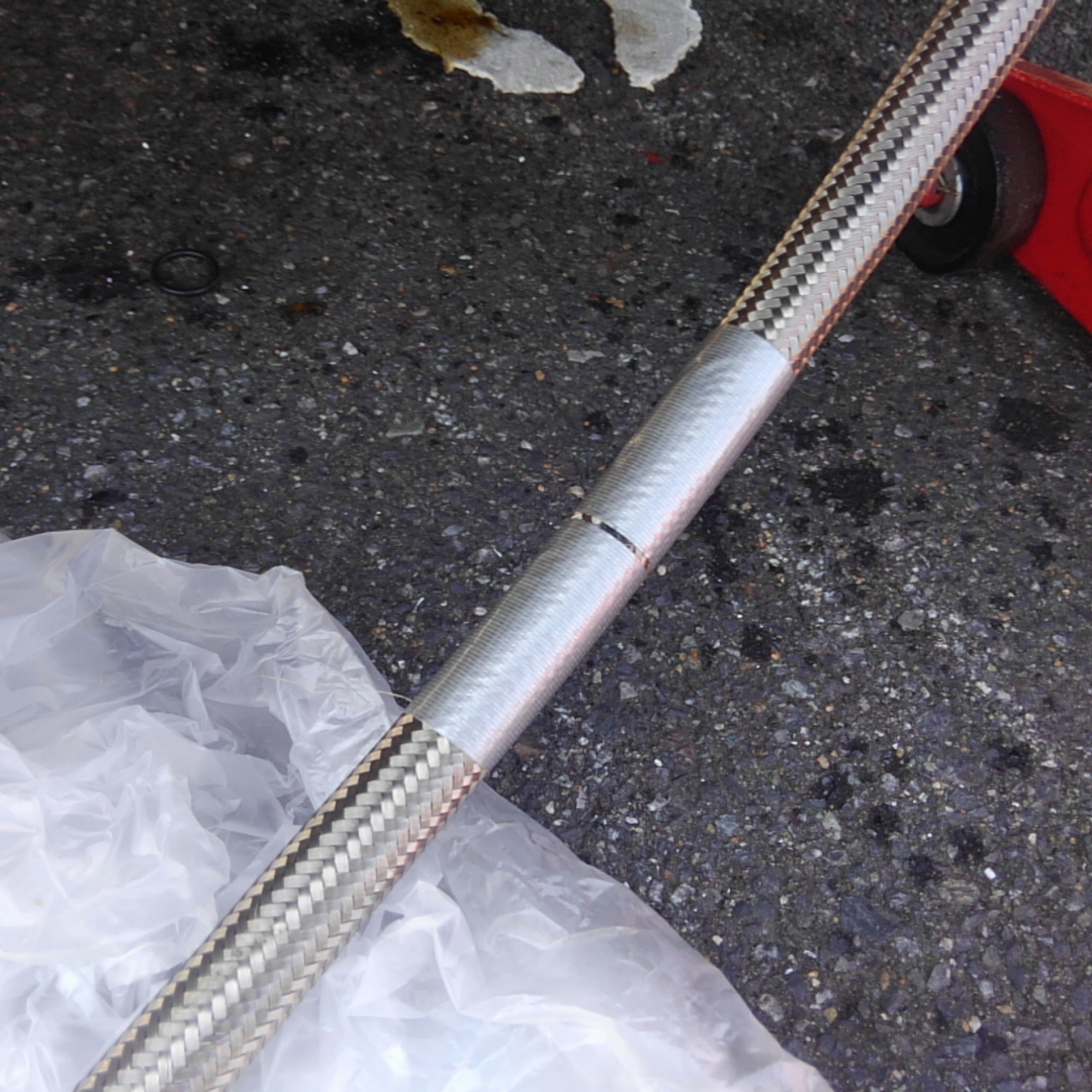 恐らく取り回しでホースが余るので、切った残りで別にメッシュホースを作って必要数を確保します。