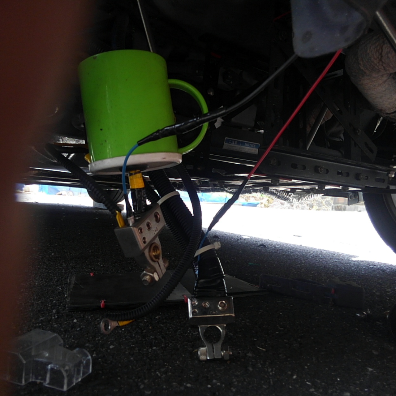 ここはトランクルームの下側、リアタイヤのちょうど間くらいの場所です。