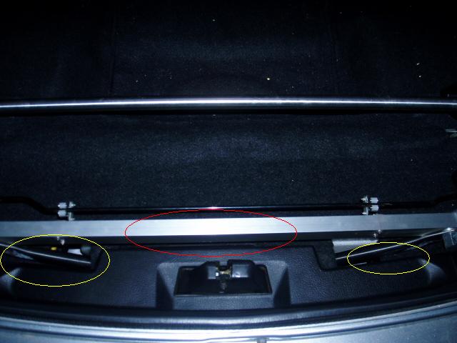 ちなみに、この取り付け部分はトランク開口部左右にある「ラゲージパフォーマンスブレース」という純正補強と連結していて、モノコックバー取り付けによって、左右のブレースを繋ぎ、剛性を上げる狙いがあります。