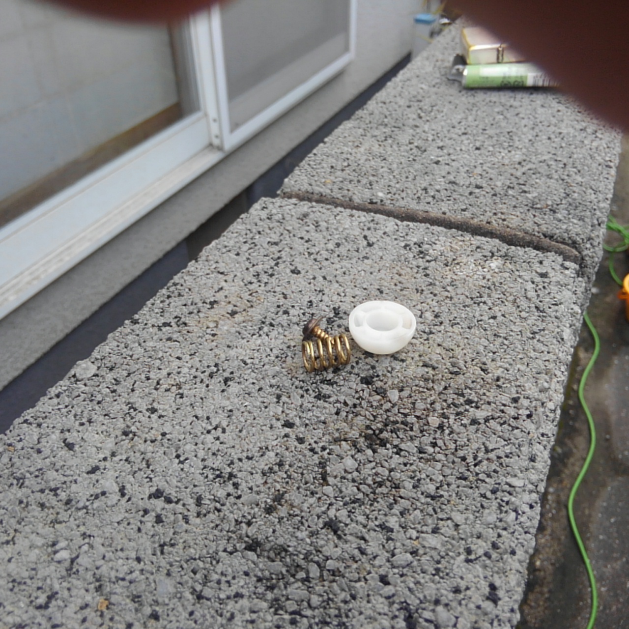 ネジを外すとバネと白い半球状の部品が外れますので