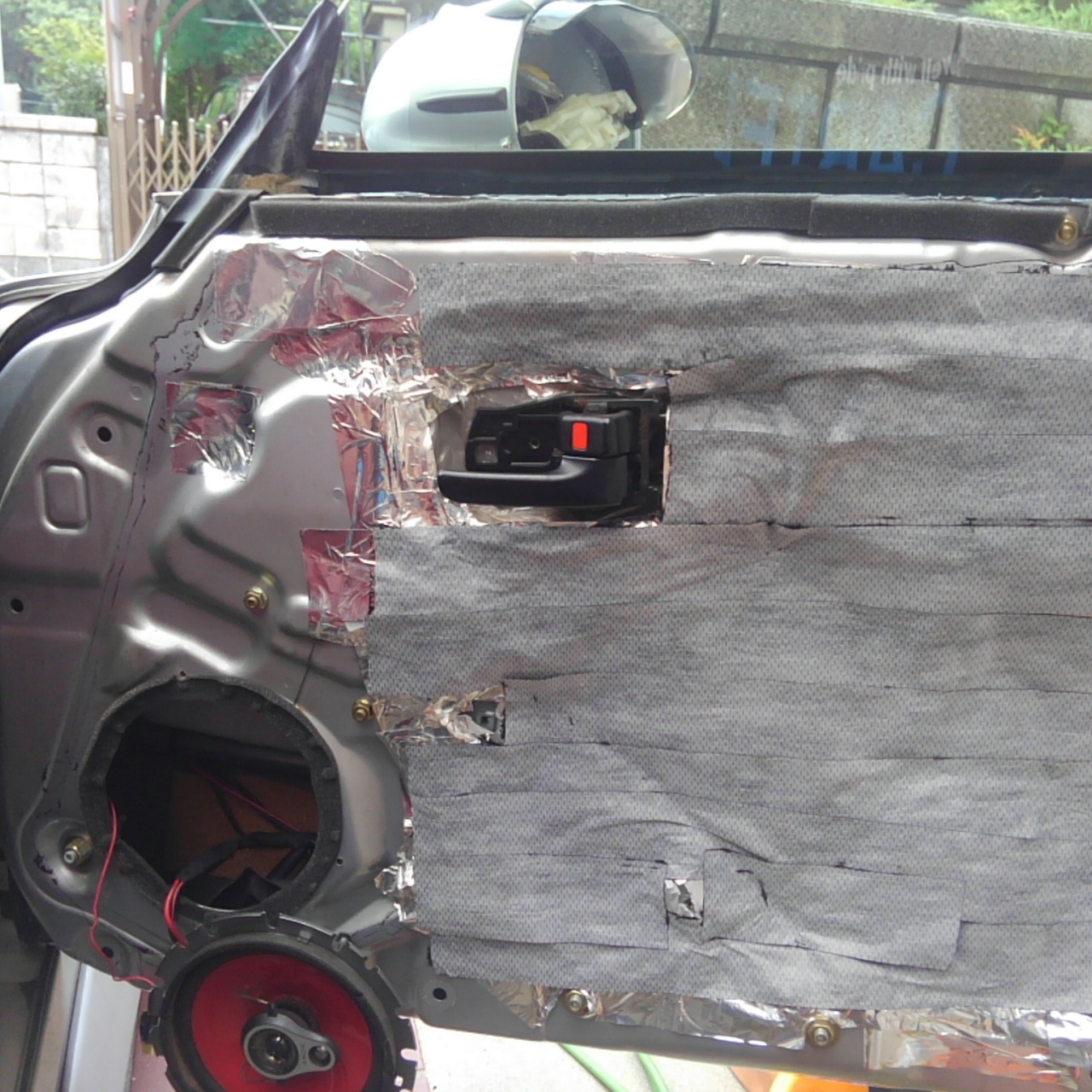ドアの内張りを外しドアスピーカーも外します。