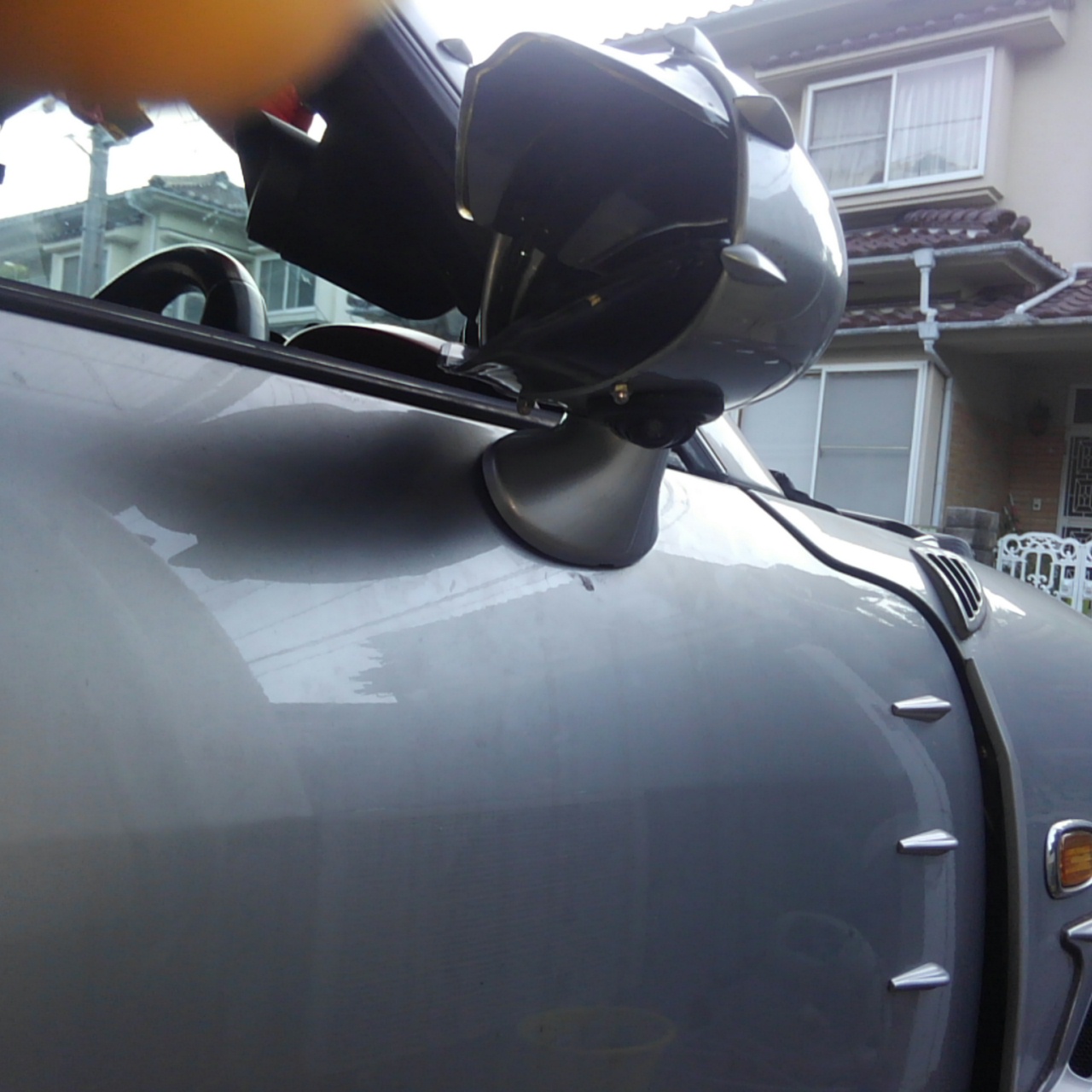 するとミラーの縁のプラスチックが熱で柔らかくなってちょっと広がります。