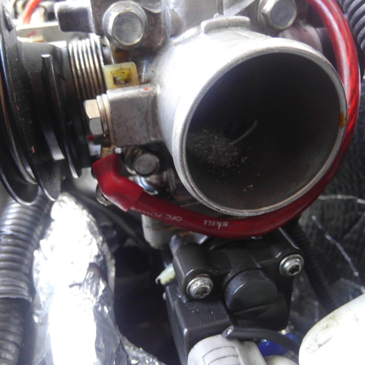 スロットルボディはアルミ製なのか簡単に穴掘れちゃうので注意、
