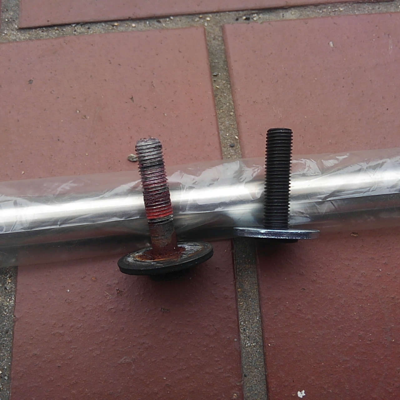 とりあえず後ろ側クロスバーのボルト(最後方の2本)も交換して予備4本が手元に残りました。
