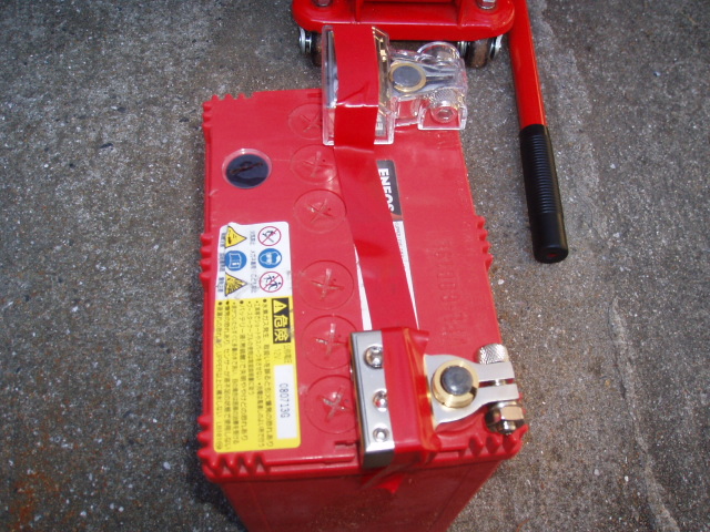 で、何とか重たいバッテリーを仮設のバッテリー台へ。